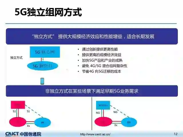 中国非常注重5G独立组网标准的实现,产业界也要求进入中国市场上的设备要能够支持5G独立的组网。这种情况能体现更高性能的5G,包括网络的切片功能和一些高可靠、低时延等物联网的性能。非独立组网方式主要满足移动互联网的需求,对运营商角度来看,也要完成两次网络调整转。当然,最终还是各运营商根据其网络情况进行策略选择。