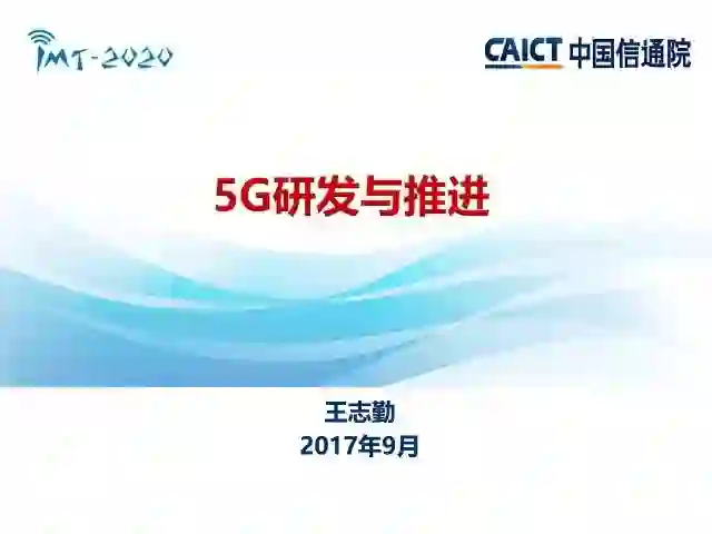 2017年9月19日,“2017新一代互联网基础设施论坛(第三届)”在北京召开,中国信息通信研究院副院长王志勤做了题为“5G推进与研发”的演讲。