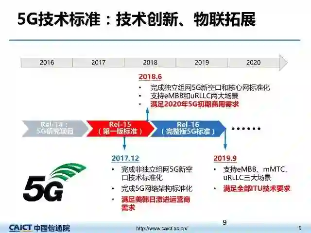 为了做好阶段一与阶段二的衔接,2016年我们就已经完成了对5G关键技术的验证工作,包括我们国家主要推动的一些创新型的5G技术,如先进多制、先进编码、高频技术等;网络方面包括网络切片、边缘计算、网络功能重构和控制承载分离等。
