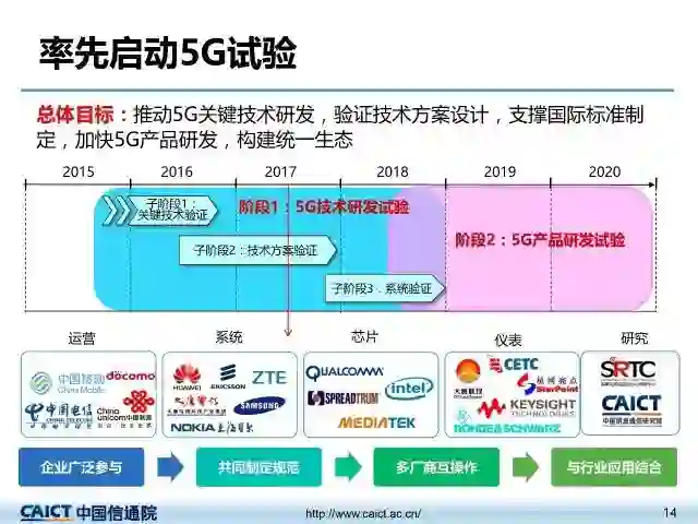 ● 第一阶段,5G技术试验是以工信部或者推进组为主体,几大国内外企业共同参与测试。