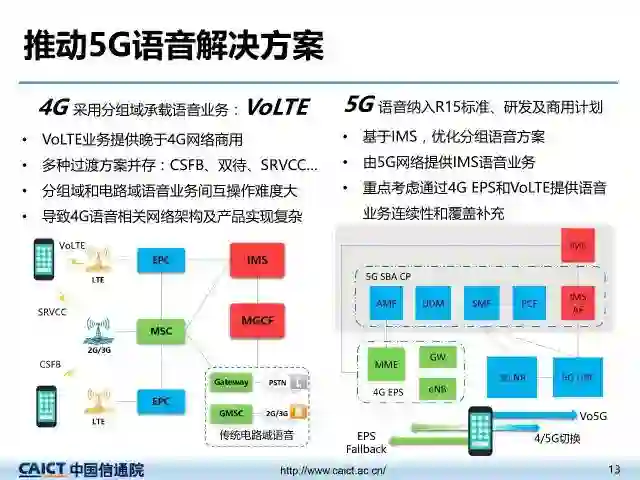 ▷ 在5G语音解决方案问题上,5G基本与4G类似,提供基于IMS语音业务,重点考虑通过4G EPS和VoLTE提供语音业务连接性覆盖补充。国内也在组织对多种语音方案的推进,希望在商用初期用户能够更好享受到语音的业务。