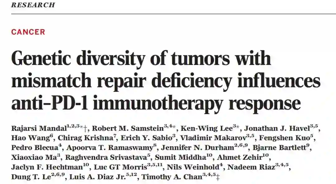 Luis A. Diaz Jr, Timothy A. Chan. Genetic diversity of tumors with mismatch repair deficiency influences anti–PD-1 immunotherapy response