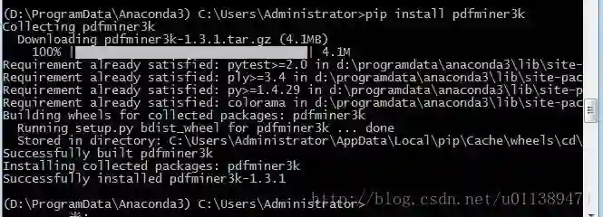首先下载pdfminer3k:https://pypi.python.org/pypi/pdfminer3k;然后安装pdfminer,将下载好的pdfminer3k解压到D:或其他合适的盘符,通过win+r 打开运行窗口,输入cmd;输入D:切换到D盘,cd pdfminer3k(pdf解压的文件夹),输入setup.py install安装软件。