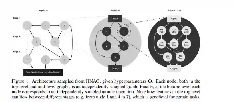 神经结构搜索(NAS)旨在以全自动的方式找到表现出色且新颖的神经网络结构。然而现有的搜索空间设计过度依赖于研究者的专业知识,所涵盖的神经网络相对比较单一,导致搜索策略虽然能找到表现不错的结构,却无法发现突破性的新型神经网络。在这篇工作中,我们 1)首次提出了搜索最优的神经网络结构生成分布(architecturegenerator)而不仅仅是单个神经网络(single architecture) 的概念,2)并针对这个概念提出了一个全新的,多阶层的,基于图的搜索空间。该搜索空间不但能生成非常多样化的网络结构,而且只由几个超参来定义。这极大减少了结构搜索的维度,使得我们能高效地使用贝叶斯优化作为搜索策略。与此同时,因为我们拓广了搜索空间(包含众多性能和存储需求差异巨大的有效网络结构),这使得多目标学习在我们的场景下更有意义。我们在六个图像数据集上验证了我们方法(NAGO)的高效性, 并展示了我们的方法能找到非常轻便且性能卓越的网络结构。