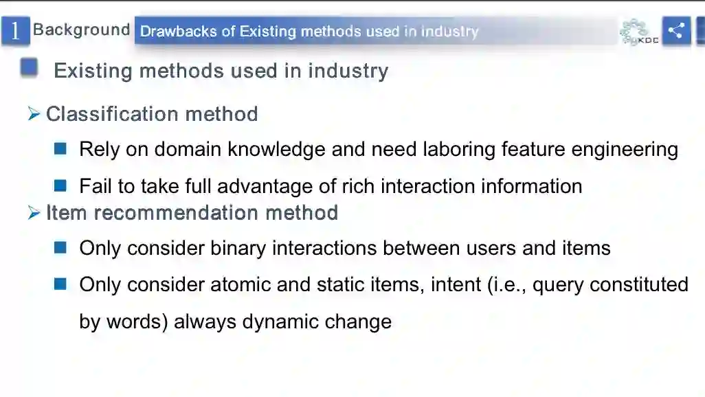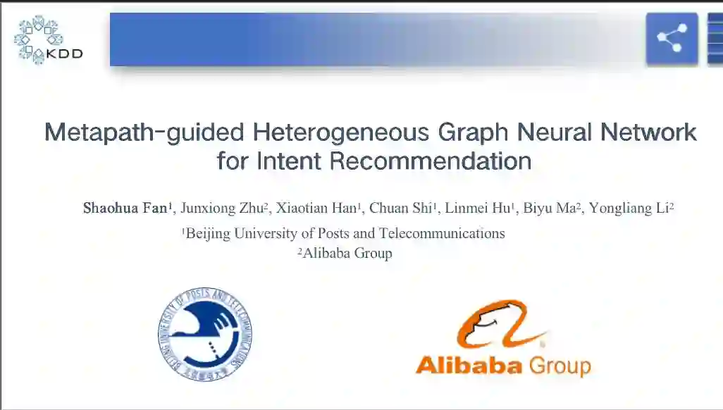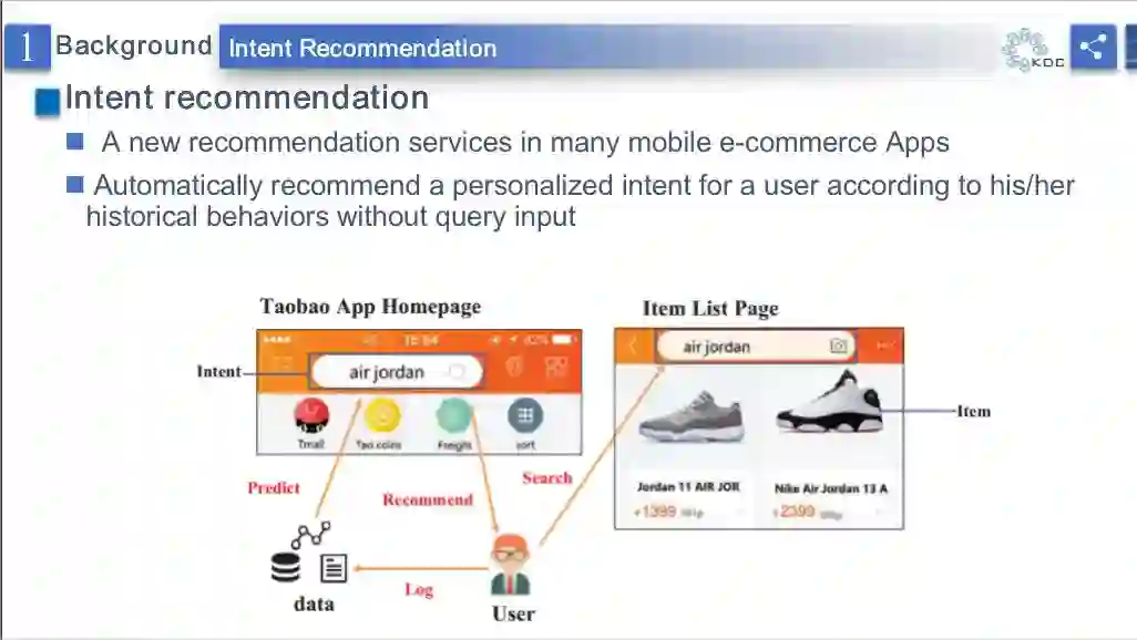 最近一种新型的推荐服务,意图推荐,被移动电商平台广泛使用。不同于传统的商品推荐,意图推荐希望在用户打开APP并没有任何输入的情况下来预测用户的意图。现在工业界针对意图推荐的解决方案主要是基于特征工程的算法来挖掘属性信息。这样就导致推荐场景里的丰富的交互信息没有充分挖掘。本报告主要介绍了如何有效利用异质交互信息进行意图推荐。