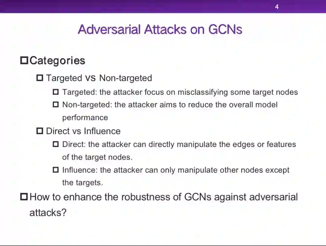 最近一些研究表明,图卷积神经网络的效果容易受到对抗性攻击的影响。本报告主要介绍了如何提高图卷积神经网络的鲁棒性,有效的抵抗图上的对抗性攻击以及噪声信息。