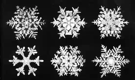 各种形状的雪花,出自 W.A. Bentley & W.J. Humphreys (1931) 出版之图书 Snow Crystals。