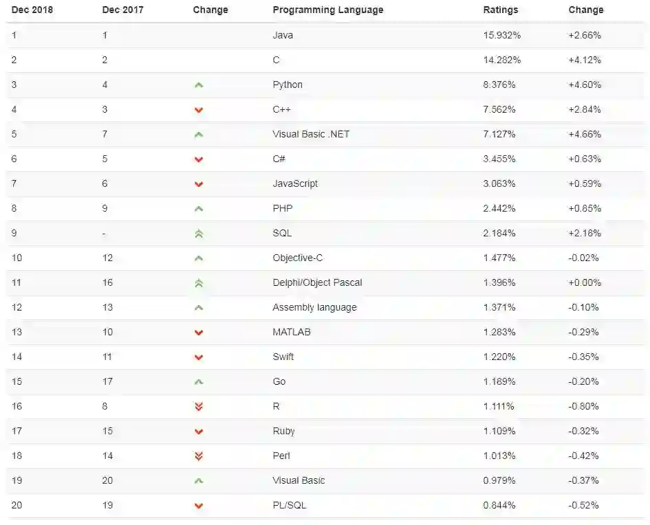 接下来看一下 12 月的编程语言排行榜 TOP 20: