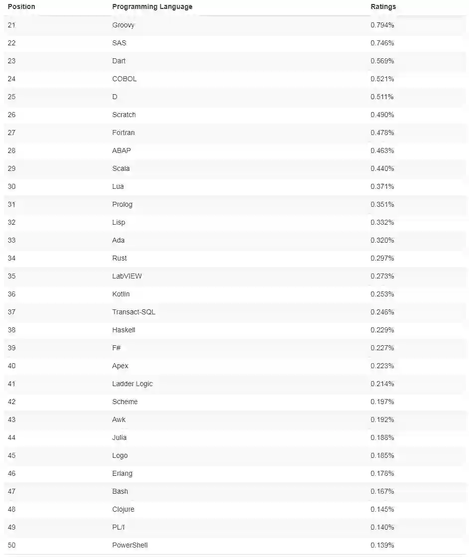 详细榜单信息请查看 TIOBE 官网。