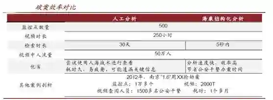 以海康威视的系统破获的某个抢劫案为例。为了从大量的视频图像中找到嫌疑人,需要对来自500多个监控点的长达250 个小时的视频进行分析,如果采用人力查阅,需要至少30 天时间,但如果采用基于深度学习的视频分析技术,仅需要不到5 秒。