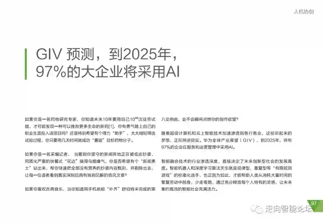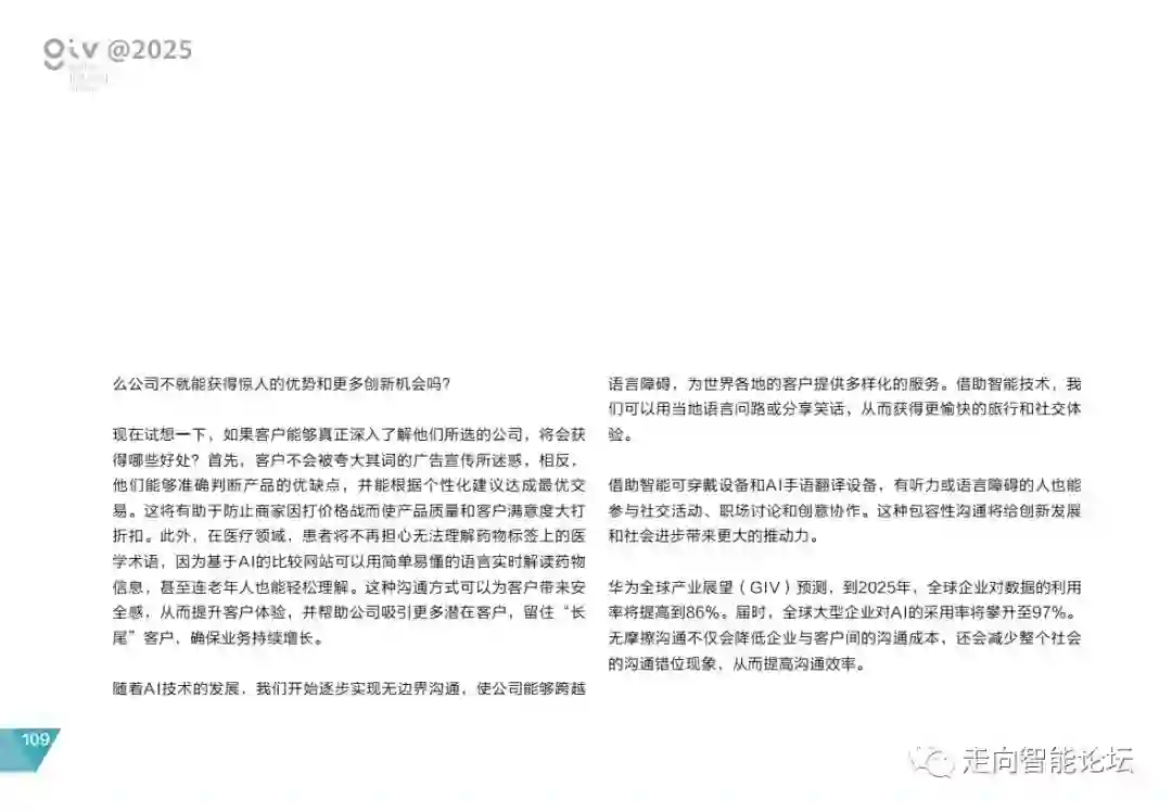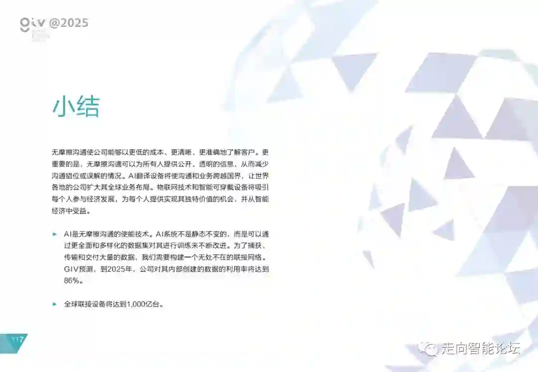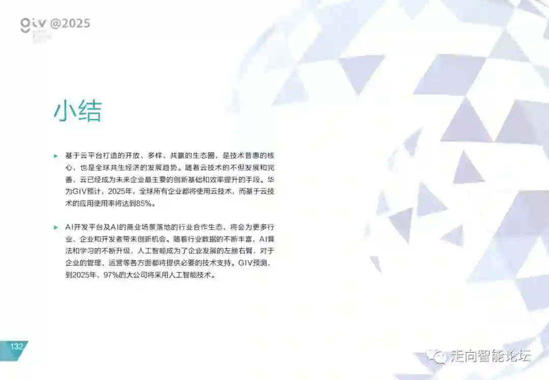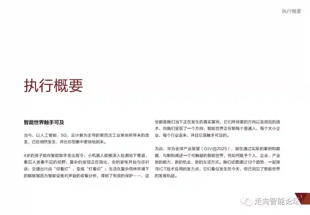 在“走向智能论坛”微信公众号回复“20190808”,可免费下载“华为全球产业展望GIV@2025:智能世界 触手可及”完整报告。
