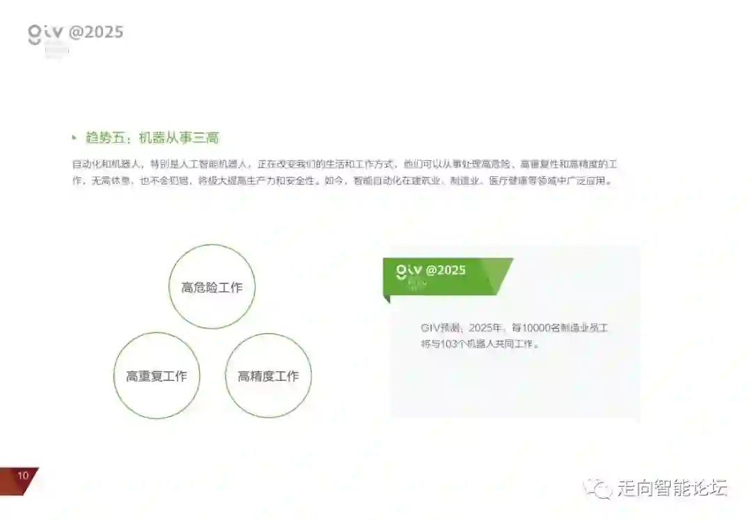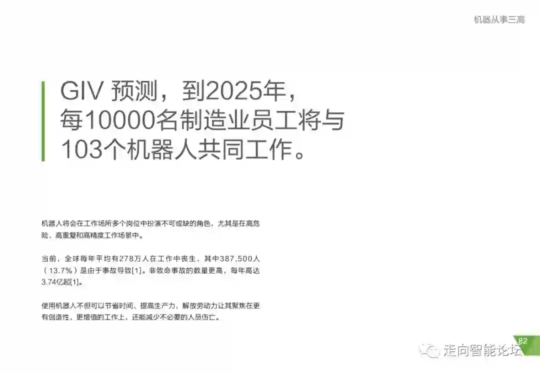 GIV预测:2025年,每万名制造业员工将与103个机器人共同工作。