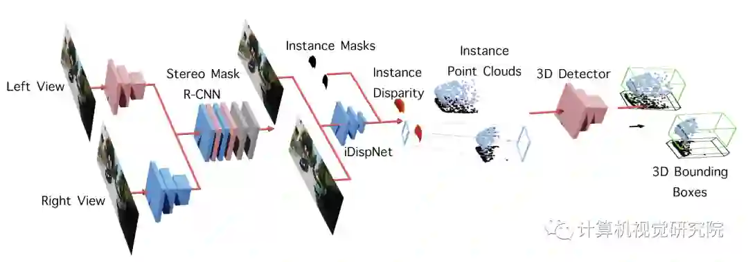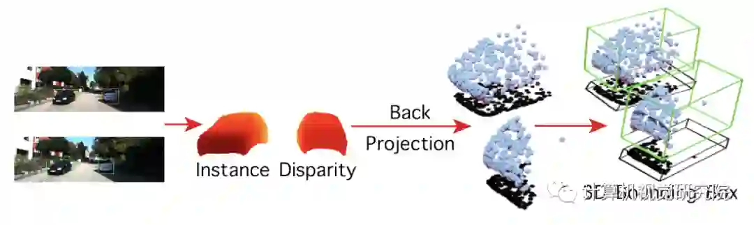 也有研究是做双目深度估计的,相比于单目相机其深度信息有可数学推导的实际意义,但碍于baseline大小,深度信息也做不到太远。今年CVPR我们也有一篇相关研究,利用shape的先验知识来辅助做双目3D检测,在相关benchmark上取得了不错的结果,但说实话离落地有一定距离,感兴趣的可见论文(https://arxiv.org/pdf/2004.03572.pdf):