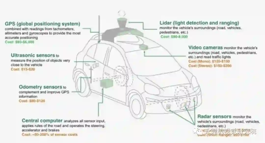至于自动驾驶车辆里面装哪些传感器完全由你的任务确定,比如:如果只需要完成高速公路的自动驾驶,类似Tesla 的AutoPilot 功能,那根本不需要使用到激光传感器;如果是完成城区路段的自动驾驶,没有激光传感器,仅靠视觉是很困难的。