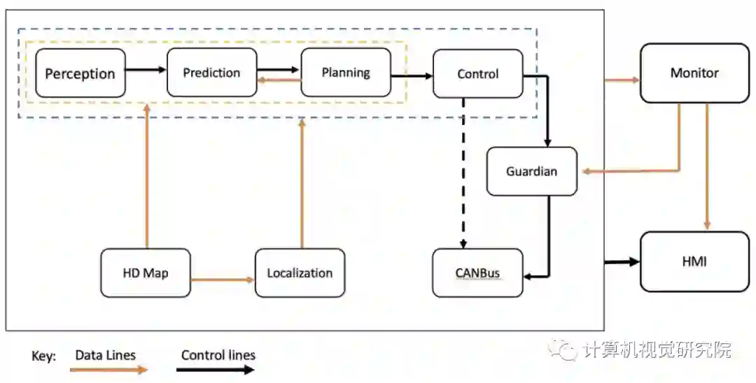 以百度Apollo的软件架构为例,自动驾驶系统核心需要解决几个问题: