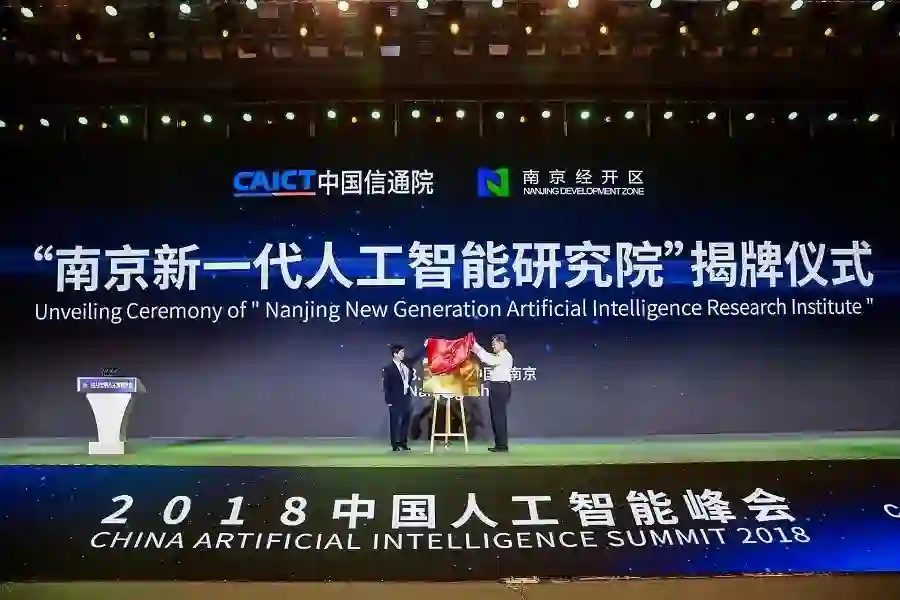 中国信息通信院与南京经济技术开发区经过前期的密切合作,依托人工智能关键技术及应用评测等,合作共建了南京新一代人工智能研究院。活动现场,潘云鹤院士与南京经济技术开发区管委会沈吉鸿主任共同上台为研究院的成立进行了揭牌。
