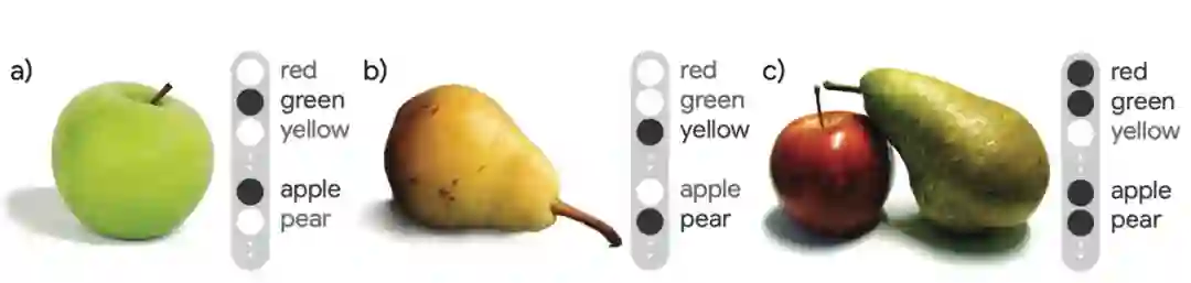 对于深度神经网络而言,模型缺乏像人类一样以自监督的方式去将场景里的物体拆分表示以更好地理解场景的能力:无法将红色、绿色、黄色等属性正确地分配给所属物体,缺少属性与物体之间的对应关系,而这种理解场景的方式对于抽象常识的建立以及因果关系的发现十分重要。