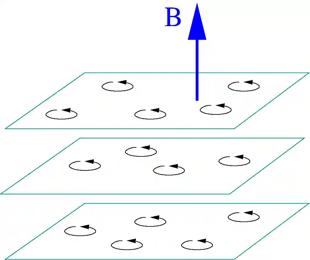 可是如果电子之间有相互作用,电子的螺旋运动会相互影响,导致相变。相变后,电子会自发组织成一层一层的结构。电子在三维的螺旋运动会变成局限在二维平面内的螺旋运动。限制在每个平面内做螺旋运动的电子形成一个二维的量子霍尔态。