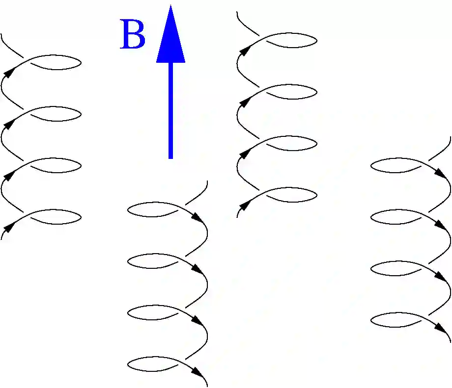 在一个三维金属中,有很多电子跑来跑去。这就是为什么金属可以导电。如果没有外加磁场,电子的运动都是直线运动。在有外加磁场时,电子的运动就都变成螺旋运动了。