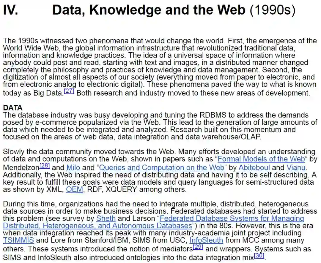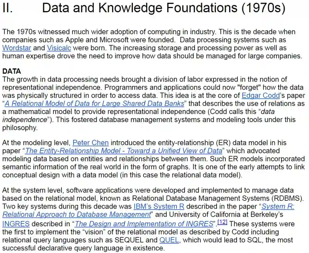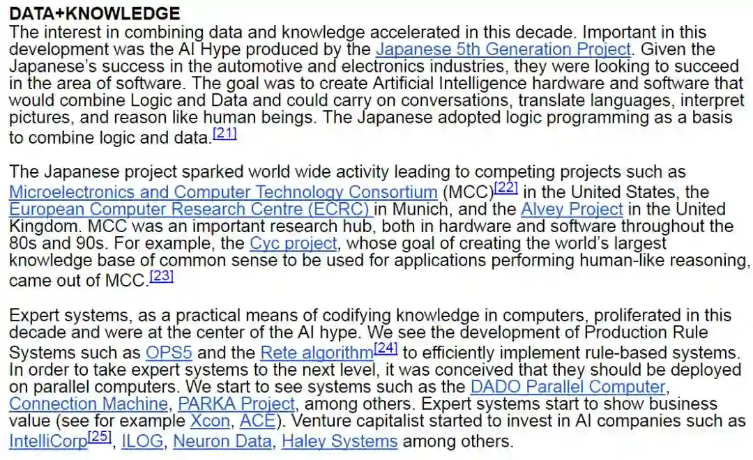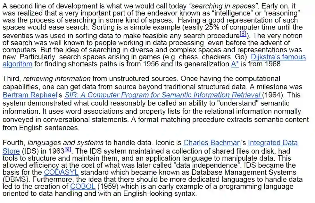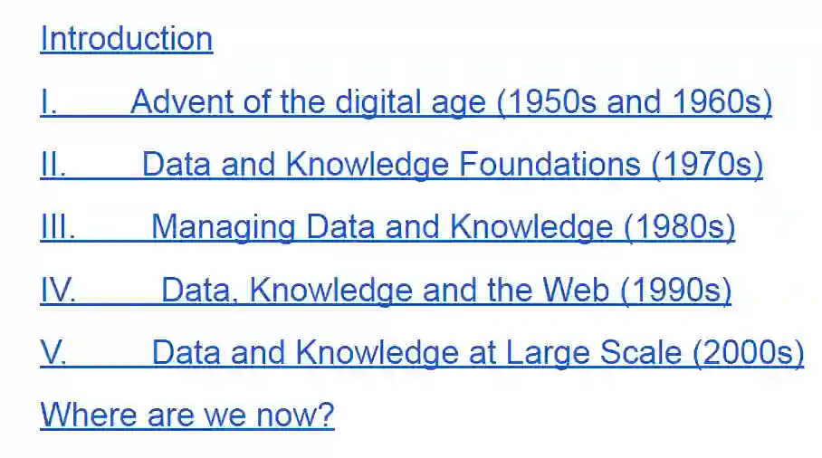 这份文档,结合18th International Semantic Web Conference的教程,提供了基于知识、数据及其组合的计算机科学学科进步的知识图谱的根源的历史背景。需要注意的是,这份文档不是一个综述survey(不一定涵盖所有方面),也不对关于这一主题的论文和系统进行系统的方法(定性或定量)分析。