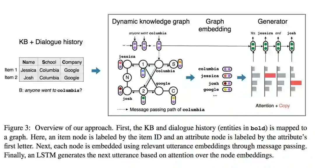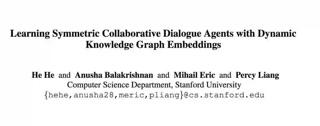 文本研究了对称合作对话(symmetric collaborative dialogue)任务,任务中,两个代理有着各自的先验知识,并通过有策略的交流来达到最终的目标。本文还产生了一个11k大小的对话数据集。为了对结构化的知识和非结构化的对话文本进行建模,本文提出了一个神经网络模型,模型在对话过程中对知识库的向量表示进行动态地修改。