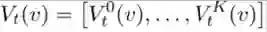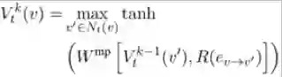 t时刻知识图谱中每个节点的向量表示为V_t(v),向量表示中包含了以下来源的信息:代理私有知识库的信息,共享的对话中的信息,来自知识库中相邻节点的信息