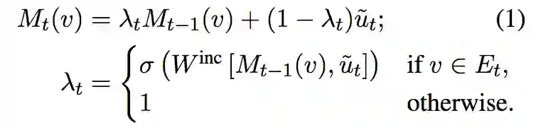 Mentions vector M_t(v) 表示在t时刻的对话中与节点v相关的上下文信息。对话的表示u_t 由个LSTM络计算得到(后文会提到) 为了区分agent自身产生的对话语句和另一个代理产生的对话语句,对话语句表示为
