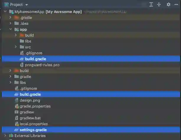 典型的 Android 项目会包含一个顶层 Gradle 构建文件。Android 项目中的每个模块又分别有一个 Gradle 构建文件。在示例项目中,我仅有一个应用模块。