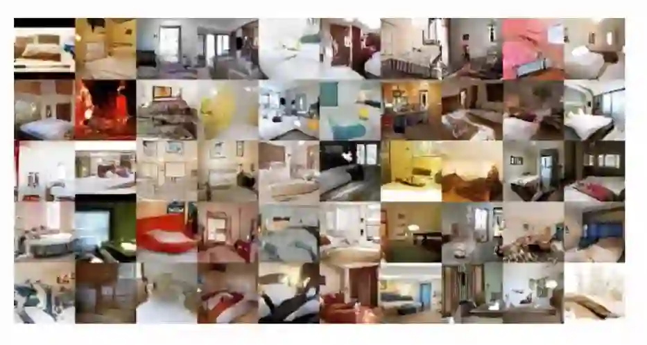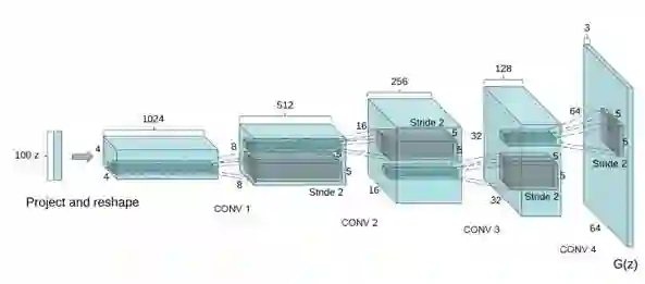 DCGAN采用一个随机噪声向量作为输入,如高斯噪声。输入通过与CNN类似但是相反的结构,将输入放大成二维数据。通过采用这种结构的生成模型和CNN结构的判别模型,DCGAN在图片生成上可以达到相当可观的效果。如下是一些生成的案例照片。