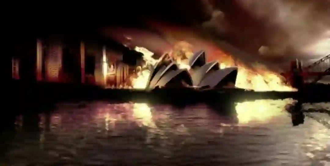 被熊熊烈火包围的悉尼歌剧院;
