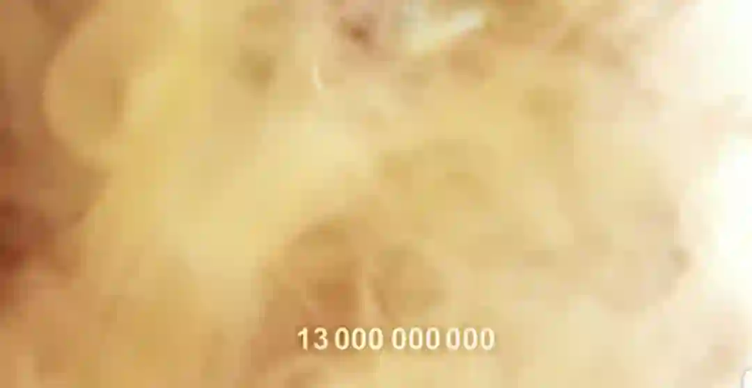 影片从130亿年前的宇宙大爆炸那一个瞬间开始,伴随着画面下方时间数字的快速更迭,将星系的形成、地球和生命的诞生、人类的进化……如时间旅行般回放了一遍……