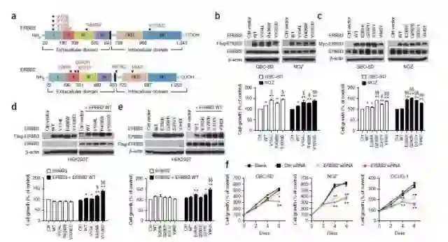 图1: Somaticalterations of ERBB3 and ERBB2 and their oncogenic effects on normal and GBCcells.(摘录自2014年Naturegenetics)