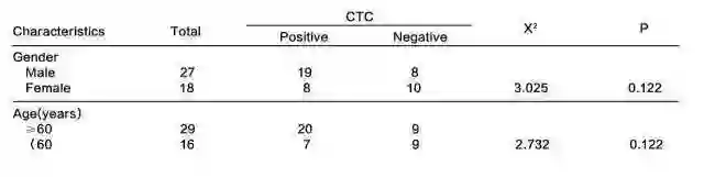 表一:胃癌患者不同临床表征与CTCs阳性率的关联性(载录自2014年中国肿瘤临床杂志)