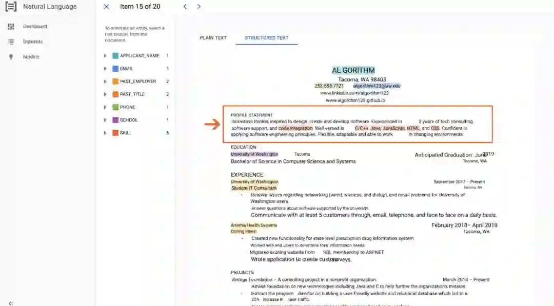 自发布以来的几个月中,它已经得到很大改进,特别是在文本和文档实体提取方面。谷歌表示,AutoML自然语言现在可以考虑附加上下文(例如文档的空间结构和布局信息)来训练模型和预测,提高发票、收据、简历和合同等类型文本的识别能力。