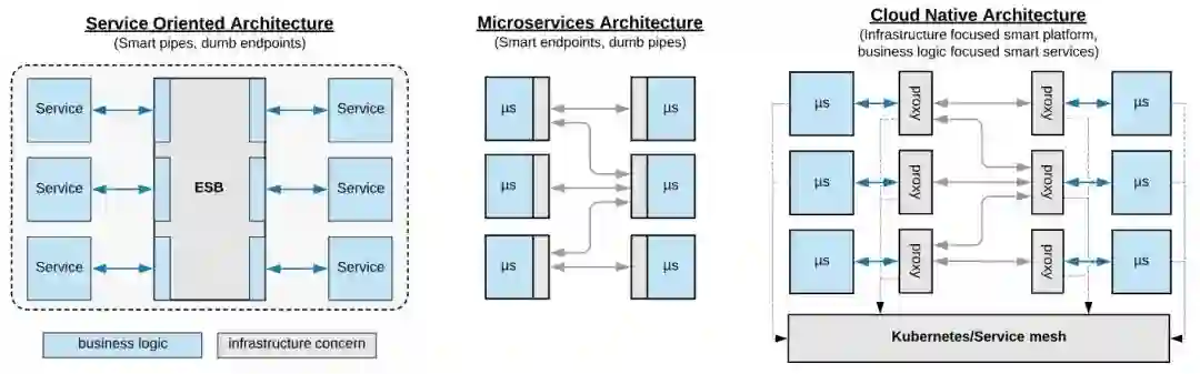 进入 21 世纪以来,我们见证了企业分布式应用架构从 SOA (Service-oriented Architecture),到微服务架构,再到云原生应用架构的演化。