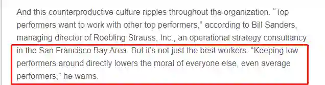 low performer会影响到所有人的平均工作水平。