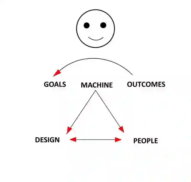 这是一个人自我进化的循环图。先有一个目标,通过machine训练后输出一个结果。而machine本身,在于人和设计。