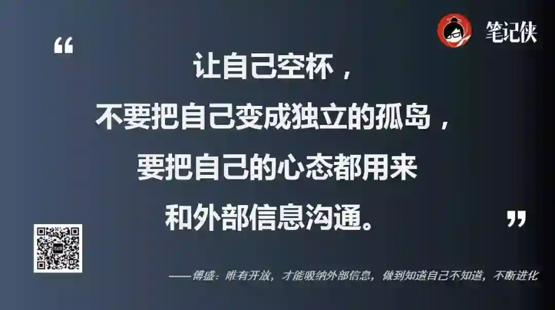 这个时代最主要的是“开放”,我本来用的是谦逊,后来担心不太好懂,改成了开放,总而言之是让自己空杯,不要把自己变成独立的孤岛,要把自己的心态都用来和外部信息沟通。