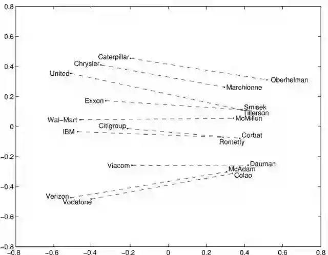 单词之间的几何图形。通过观察上述单词,我们可以看出公司和其 CEO 之间内在的几何关系。