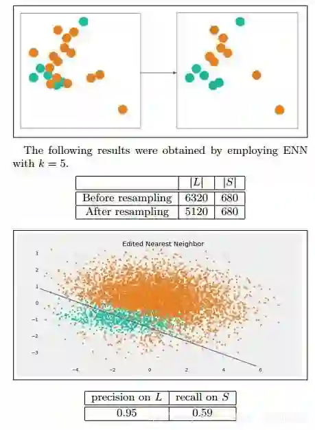 Edited Nearest Neighbor (ENN):将那些 L 类的样本,如果他的大部分 k 近邻样本都跟他自己本身的类别不一样,我们就将它删除。