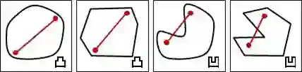 「凸」的定义是:圆形內任意亮点的连线不会经过圆形外部。「凸」並不是指表面呈弧状隆起,事实上凸包是由许多平坦表面组成的。