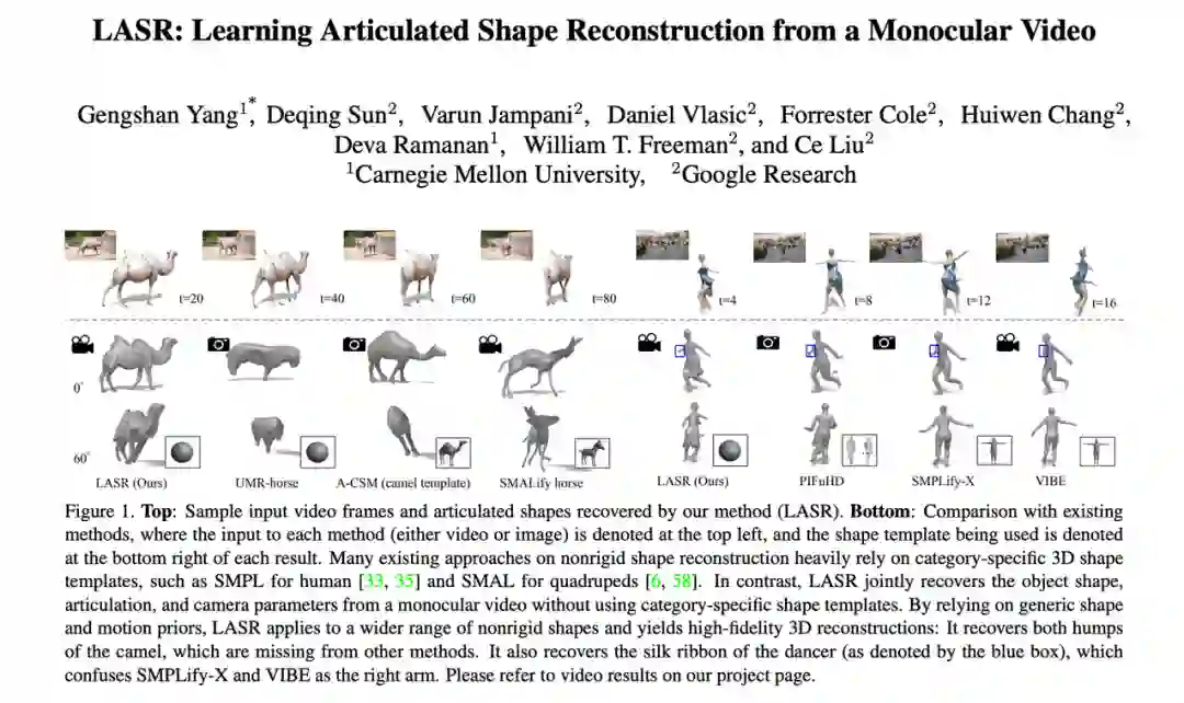 论文链接:https://openaccess.thecvf.com/content/CVPR2021/papers/Yang_LASR_Learning_Articulated_Shape_Reconstruction_From_a_Monocular_Video_CVPR_2021_paper.pdf