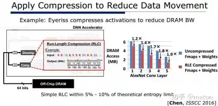 同样,如果硬件支持压缩功能,那么也可以减少数据搬移,例如,Eyeriss在写回数据时候会进行压缩编码再写回,这样大大减少访存的时间。