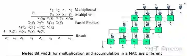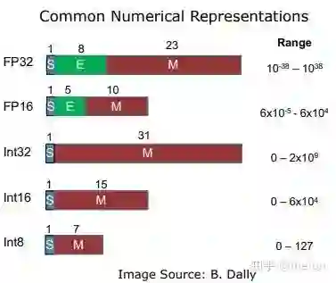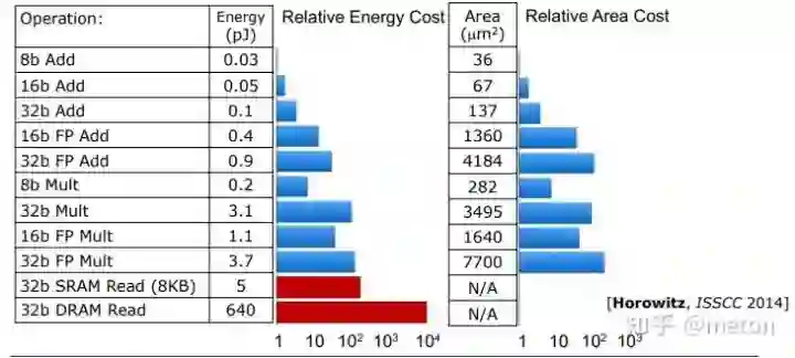 提前从体系结构的考量角度思考量化带来的另一个好处是节能和芯片面积,怎么理解呢?每个数使用了更少的位数,做运算时需要搬运的数据量少了,减少了访存开销(节能),同时所需的乘法器数目也减少(减少芯片面积)。