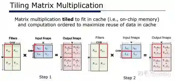 矩阵分块可以更好地匹配各级cache的大小,这样cache局部性更好,访存时的miss率更低。除此之外,对矩阵的内存数据布局进行重排布来增加待计算数据放置的连续性,这样取数的时候cache miss率也会更低,像常见的 NCWH 和 NWHC 排布模式都是这方面考虑。