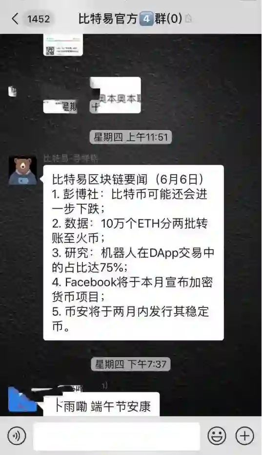 铅笔道留意到,在比特易的官方微信群中,6月6日(上周四),群内还在发布比特易的官方区块链要闻。但是,该群已在今早被解散。
