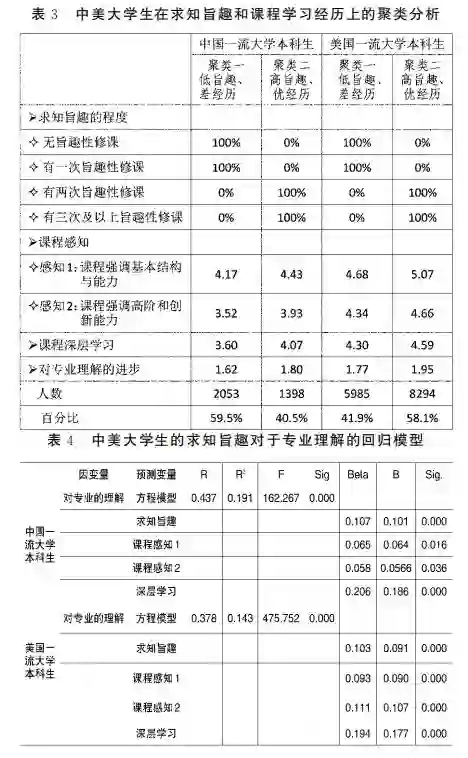 1.中美一流大学本科生在求知旨趣和课程学习经历质量上的差异