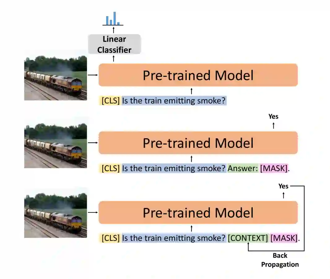 pre-model prompting:在文本编码器之前将视觉特征和可学习 soft tokens 传递给 Transformer 解码器生成。