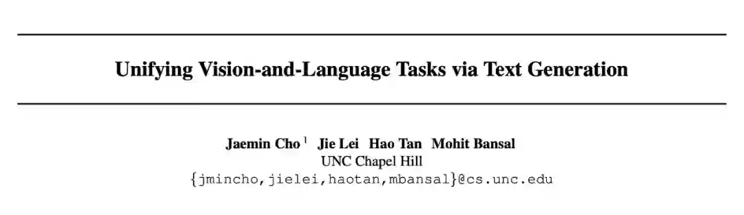 提出了一个统一的框架、统一的训练目标,能够兼容 7 个多模态任务的学习。统一的训练方式是 multimodal conditional text generation,即输入视觉图片+文本,生成文本 label,不同的任务之间的知识可以共享。
