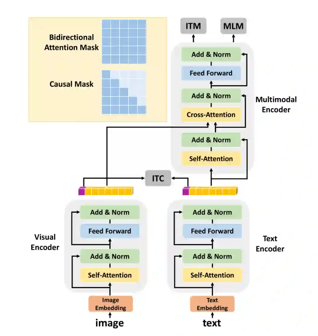预训练使用图文对比学习+MLM+图文匹配 loss。